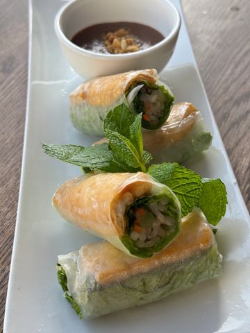 Tofu, Vermicelli, Lettuce, Beansprout, Mint, Cucumber, Chive, Pickled Carrot and Daikon. Served with Peanut Sauce.