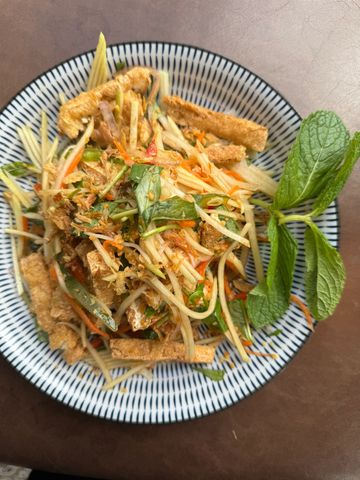 Tofu, Green Papaya, Vietnamese Coriander, Carrot, Garlic, Onion, Fried Shallot, Soy Sauce, Peanut.